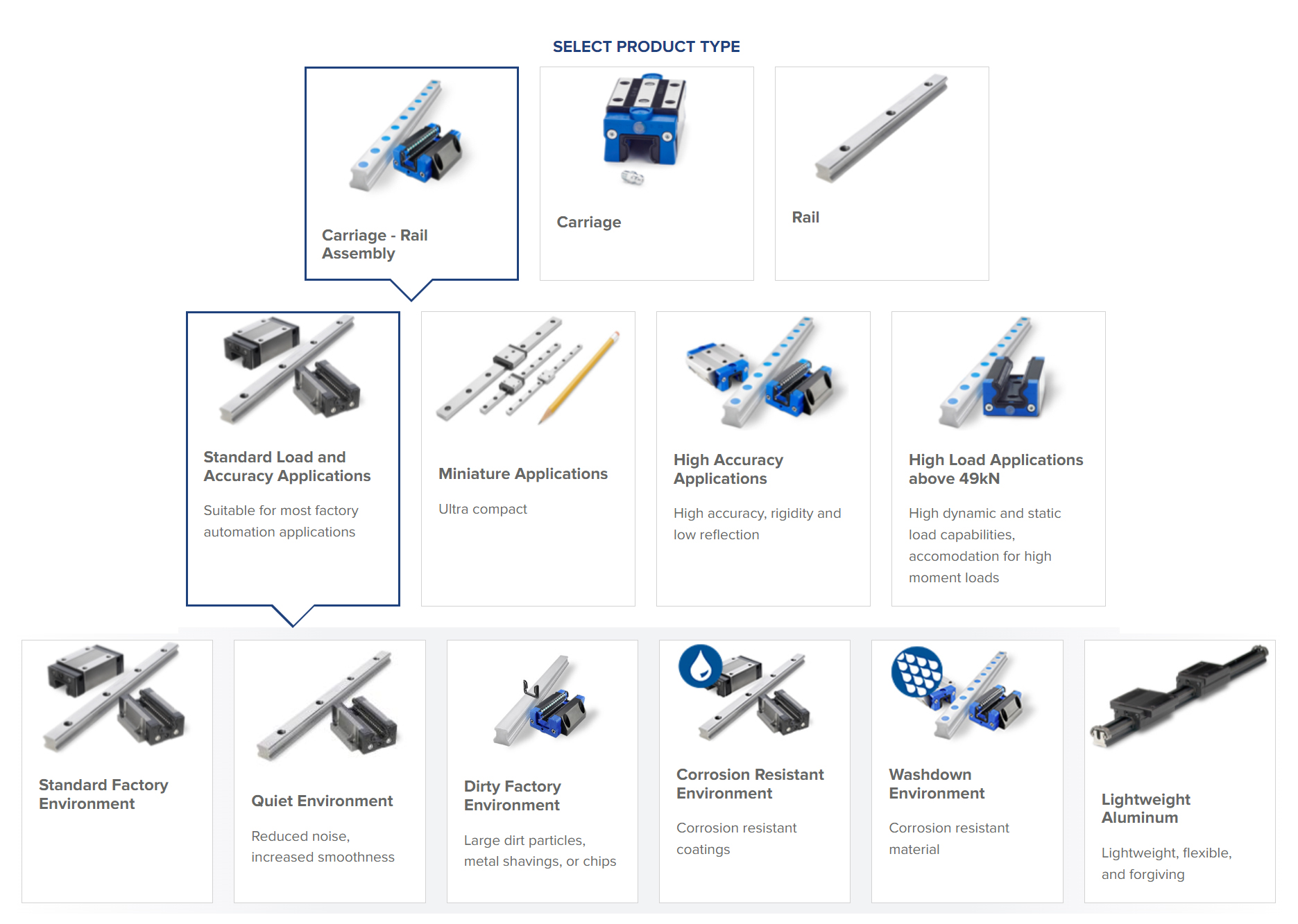 Figure 2. Online sizing and selection tools, such as this one from Thomson Industries, use visual aids to guide users to optimal profile rail choices in mere minutes. Image courtesy of Thomson Industries, Inc.